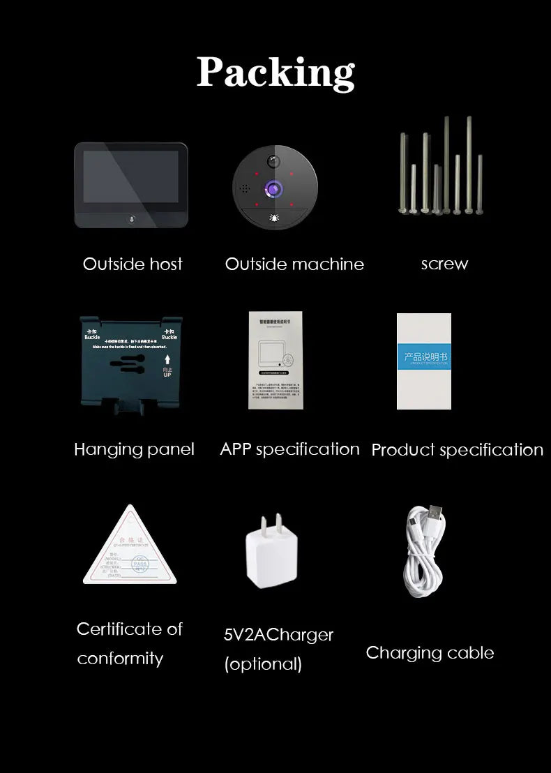 1080P Tuya Smart Digital Door Viewer Video Doorbell Wireless WiFi Two-Way Audio Video Door Eye With Camera