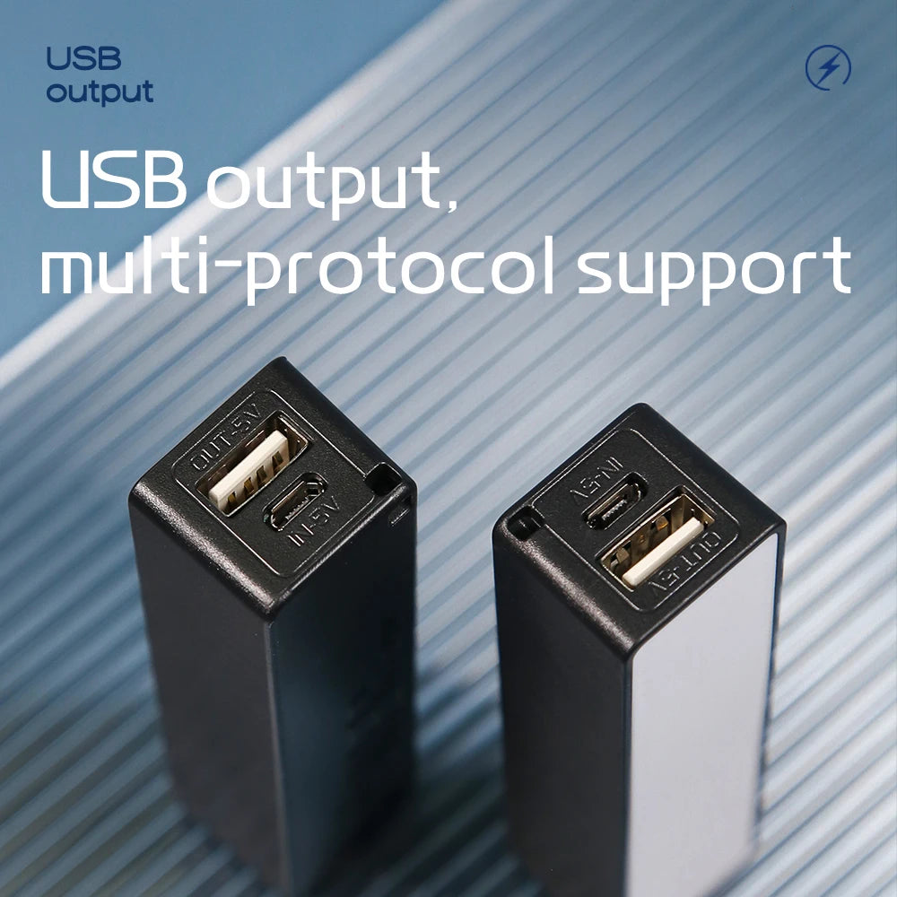 This product is equipped with an 18650 battery, which does not require welding and has a relatively low power of 5V1A, but can meet daily needs. You can use it after installation. The output port only has a USB port, and the Android port can only input but not output. The product has almost no profit margin. Please contact us promptly if you have any questions upon receipt. The spring end is the negative pole, and the other end is the positive pole. Do not reverse connect the battery.