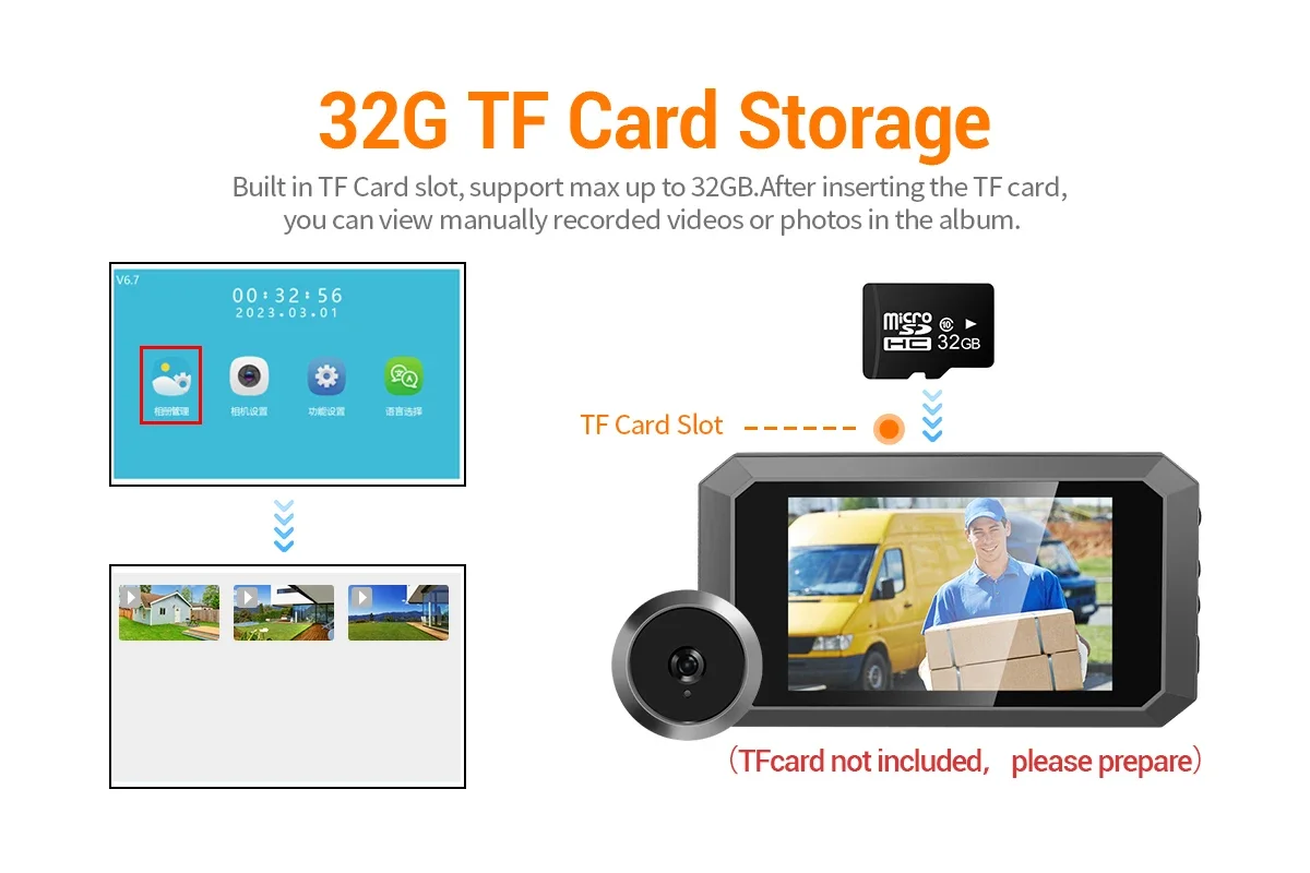 3.97inch Video Peephole Doorbell Camera Video-eye Auto Record Electronic Ring Night View Digital Door Viewer Entry Home Security