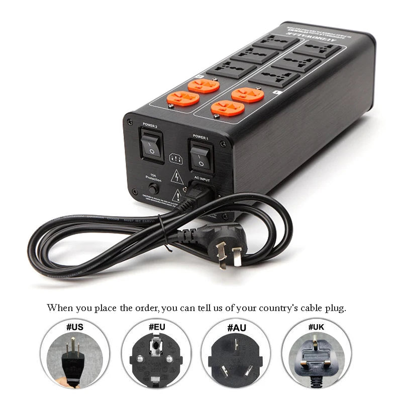 3000W 15A Audio Noise AC Power Filter For HIFI Audio System 15A Overload Protector EU UK US AU Standard power Socket Outlets