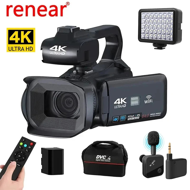 4K 60FPS Camcorder Professional Digital Video Camera 4K HD YouTube Streaming Camera 64MP 18X Zoom 4" Touch Screen Vlog Recorder
