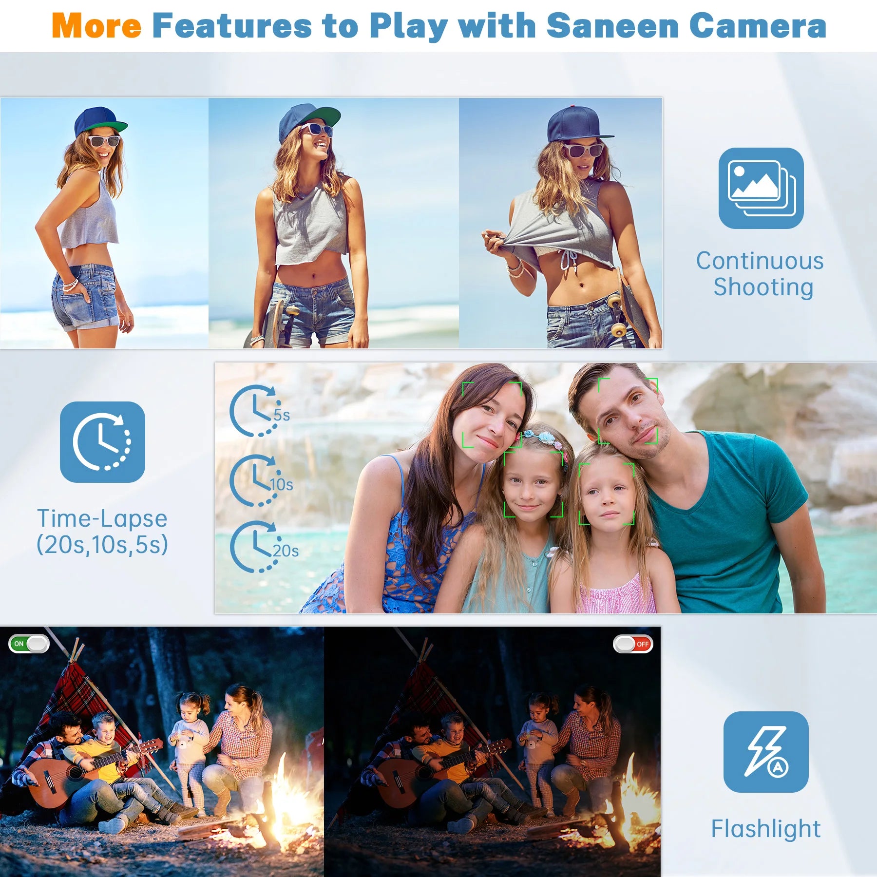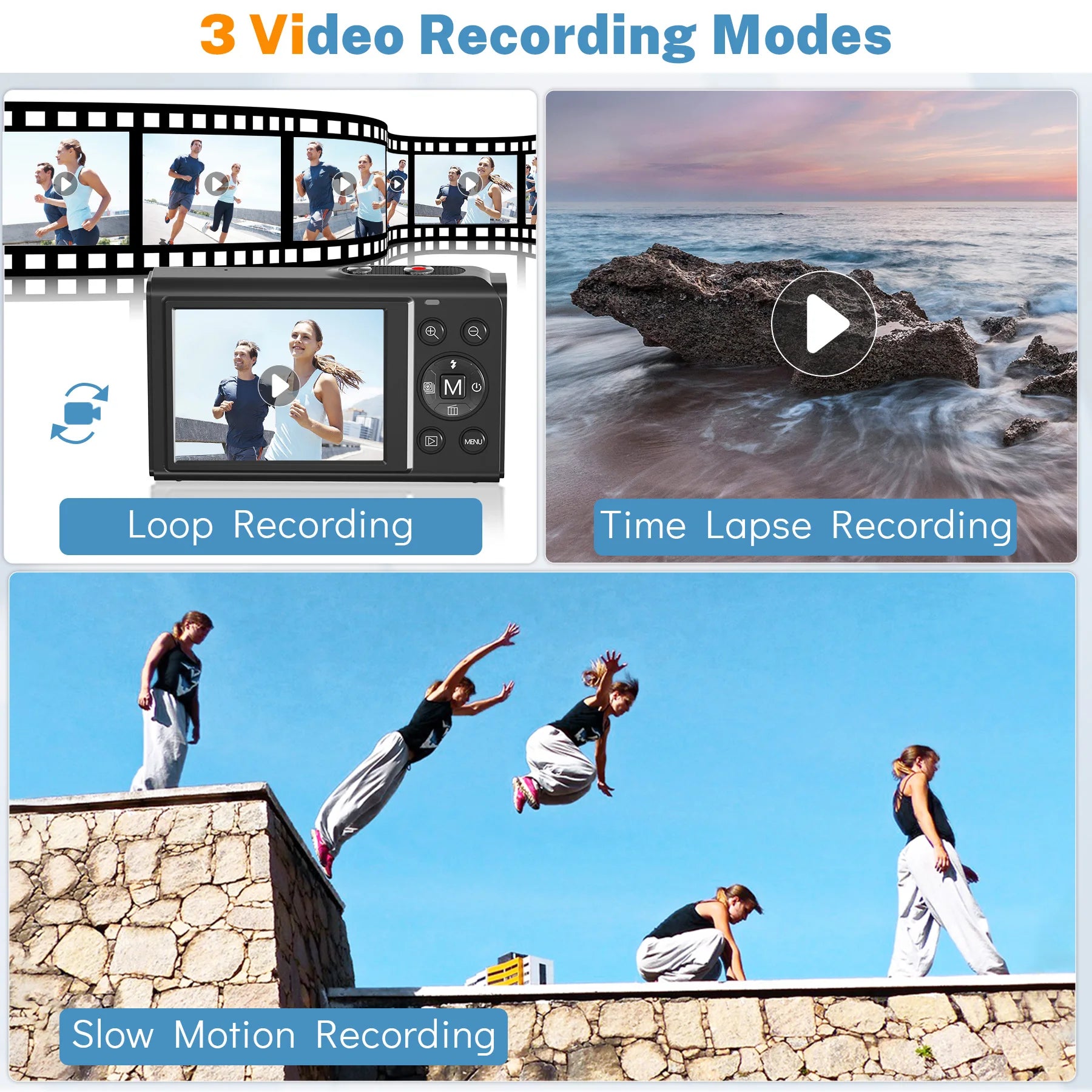 Multifunctional Camaras Fotograficas: ①16X Digital Zoom Lens .②Burst shooting. ③Self-time shooting - Self-timer function(3s/5s/10s). ④Flash Light - Fill light makes sure pictures stay high quality even in dark