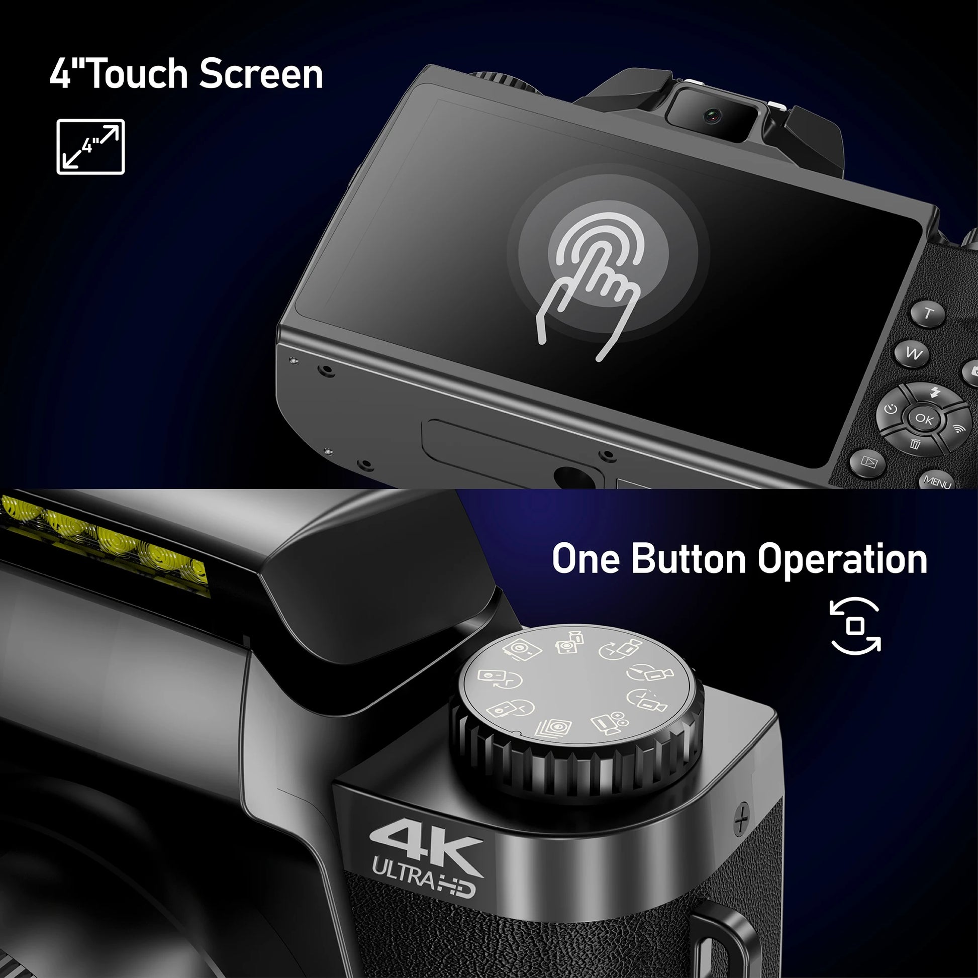 64MP Digital Photo Camera SLR DSLR For Photography Auto Focus 4K 60FPS Vlog Camcorder 4" Touch Screen Youtube Livestream Webcam