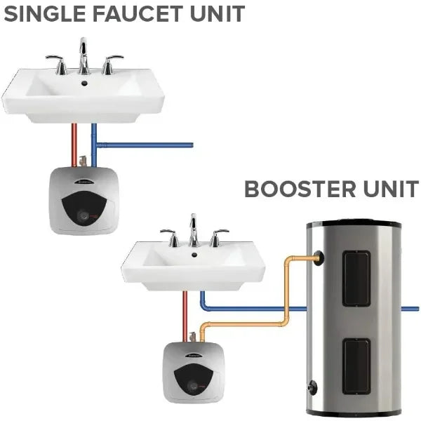 - Provide immediate, stored hot water at the point of use that can be used as a stand alone water heater or as a booster for your primary water heater
