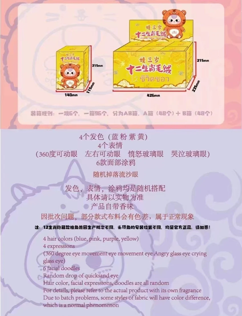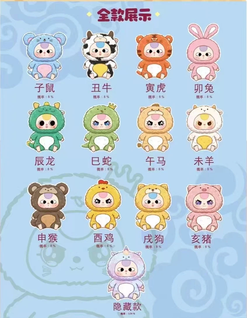 Baby Three 12 Chinese Zodiac Series Plush Blind Box Toys Mystery Box Cajas Misteriosas Anime Figures Kawaii Dolls for Girls Toys
