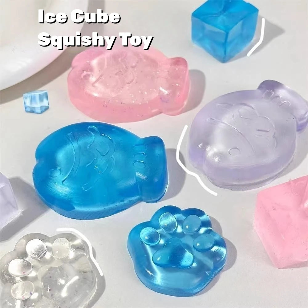 Clear Ice Cubes Squishy Toys Cute Cat Paw Fish Stress Relief Fidget Toy TPR Sticky Antistress Ball Slimy Squeeze Toys