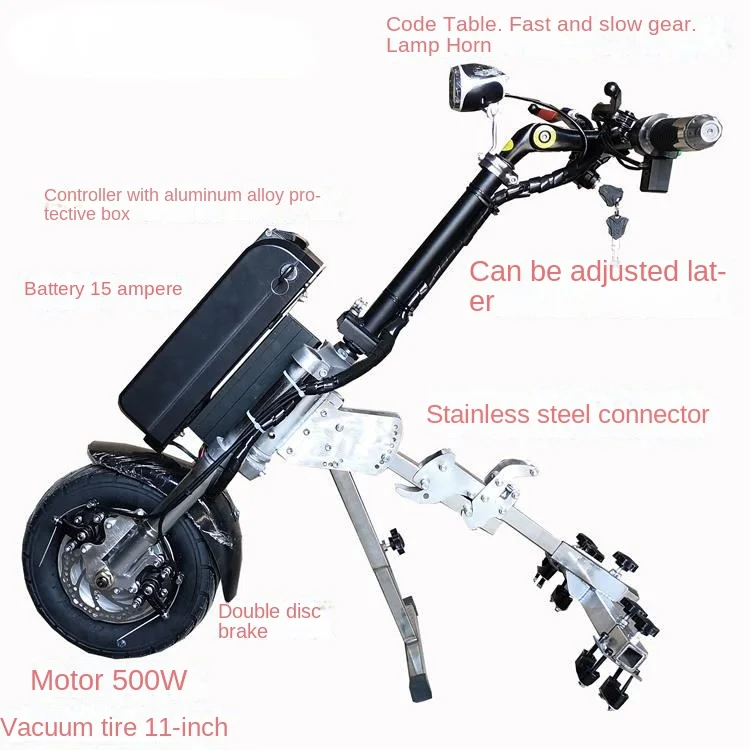 Disabled vehicle electric towing head, disabled wheelchair modification, front drive wheelchair traction, high-power front end