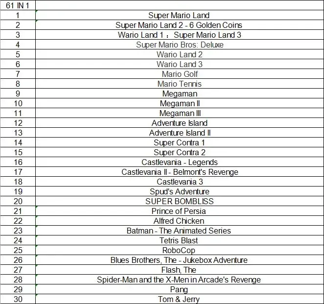 GBC Game Cartridge 16 Bit Video Game Console Card 108 IN 1 61 in 1 All in one Combo Card For GBC/GBA/SP