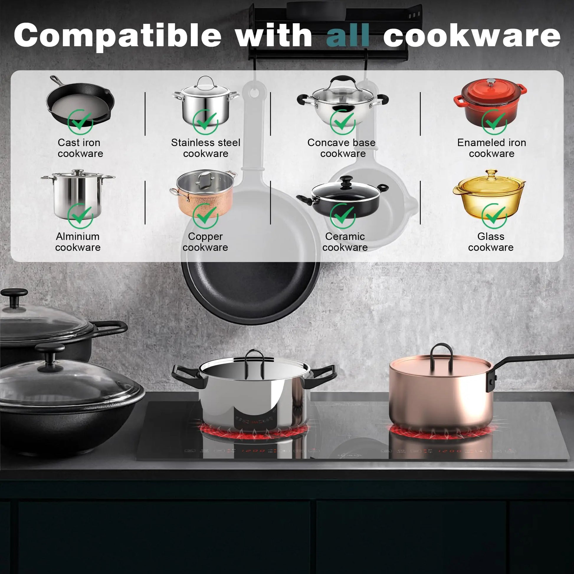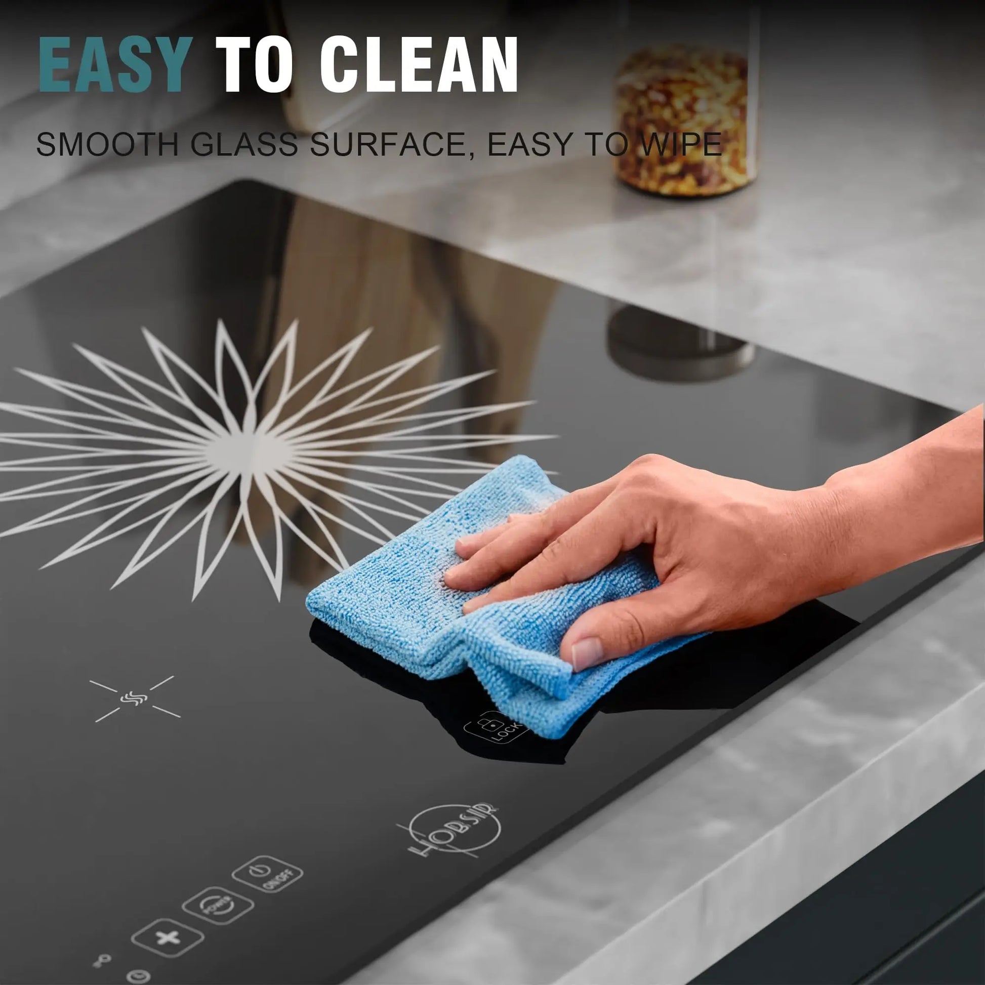 Hobsir Hob 2 Burner Built-in Electric Cooktop 24 Inch,110V-120V,Timer,Safety Lock for Apartment,with Plug