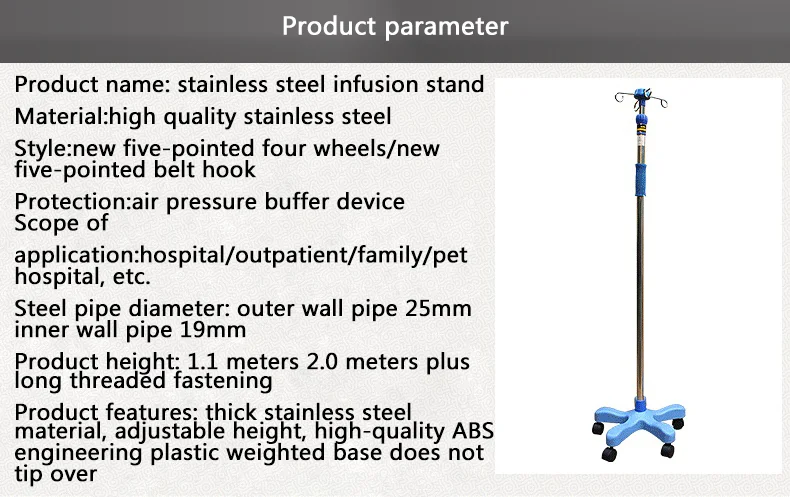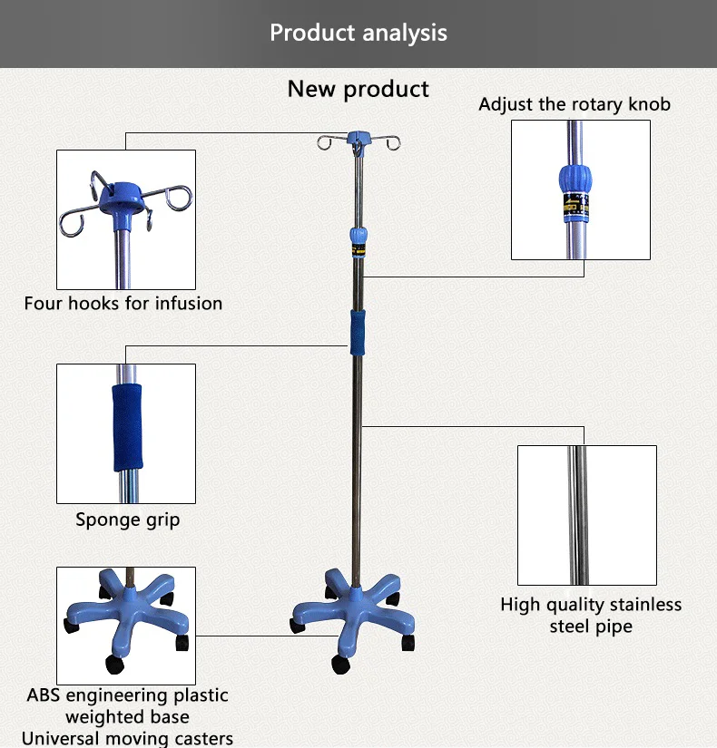 | Medical IV pole stand adjustable Infusion stand convenient and durable drip stand |