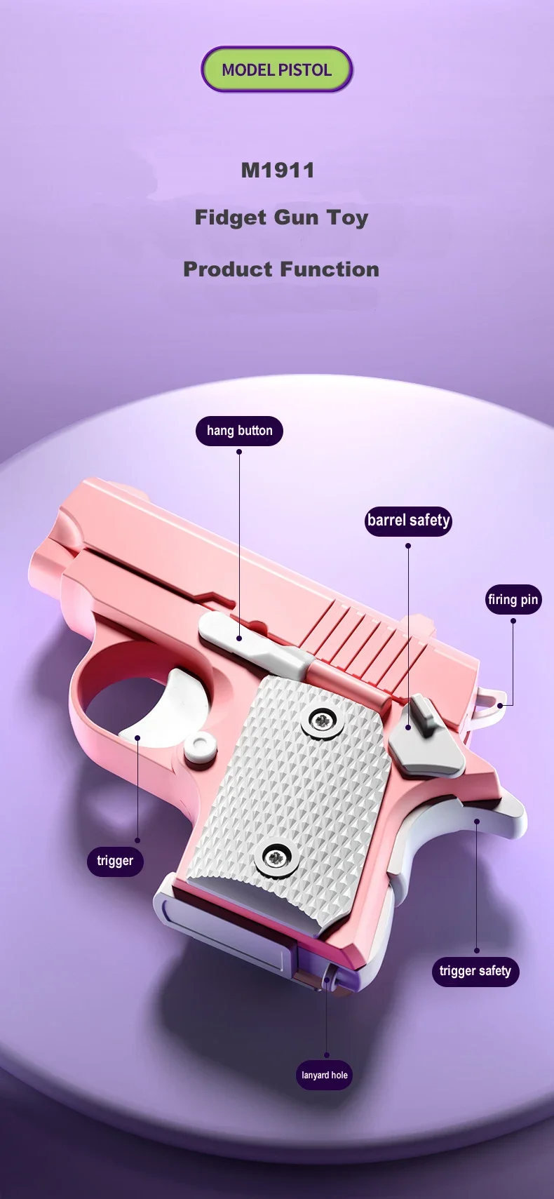 New Arrival Stress Relief ABS Plastic Mini 1911 3D Printed Gravity Fidget Gun Pistol Toy Gift Promotion Toy For Boys Kids