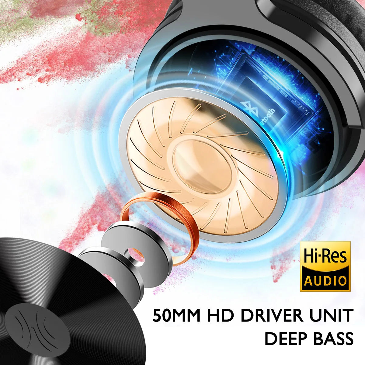 Enjoy superb, balanced sound and supreme comfort with the OneOdio wireless bluetooth headphones. Large 50 millimeter speaker unit drivers combined with neodymium magnets provides stereo Hi-Res sound, powerful bass, clear vocal, and crisp high tones form perfect balanced sound.
