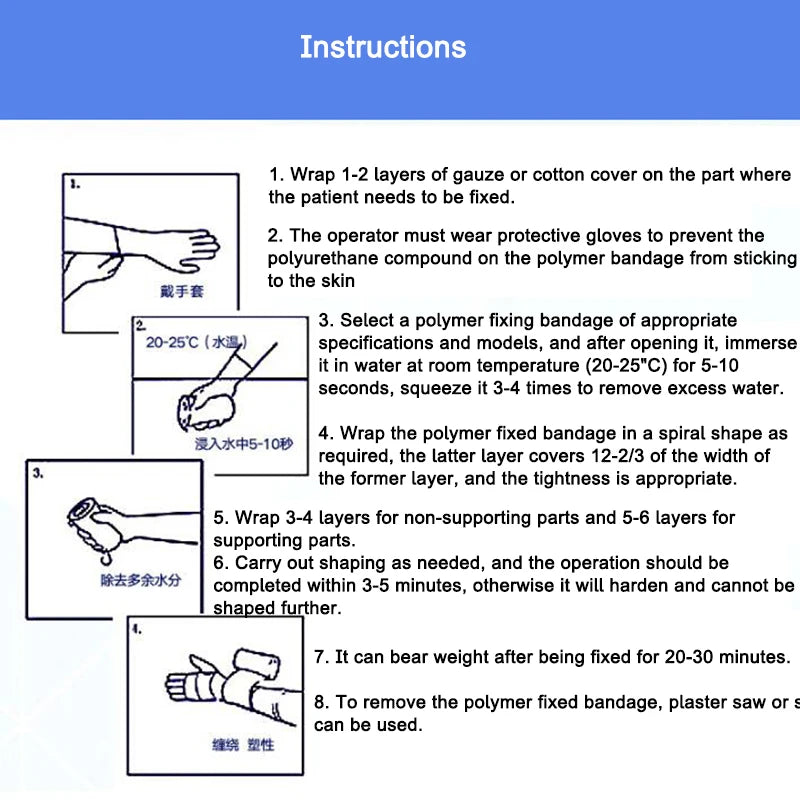 2. The operator must wear protective gloves to prevent the polyurethane compound on the polymer bandage from sticking to the skin
