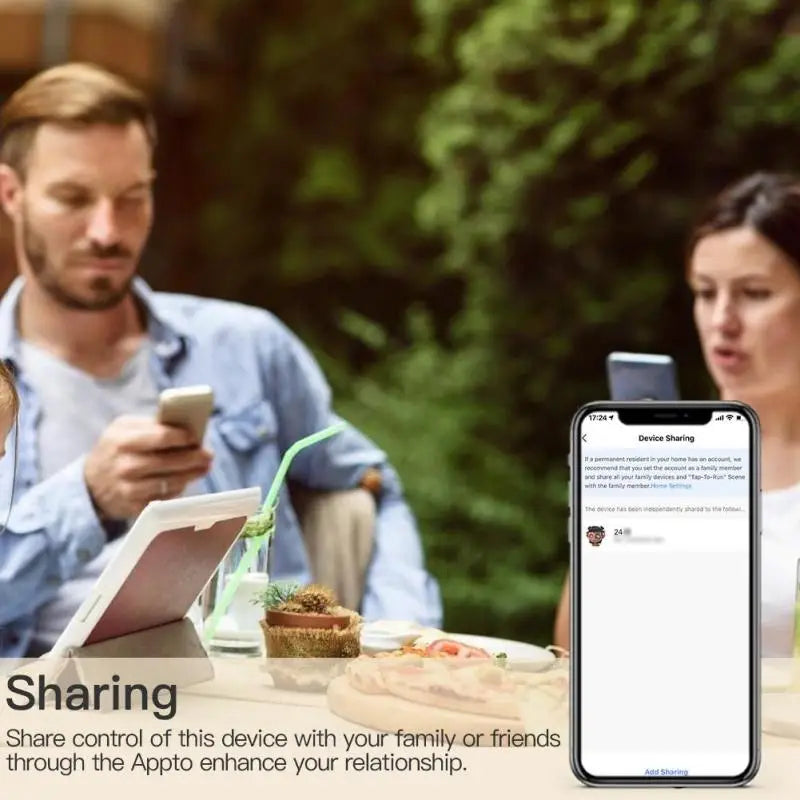 The main account can be shared with other family members, and the functions and settings are completely retained and copied; security: once the main account adds a light, the light will be hidden and other users can no longer find and add; it needs to be actively shared before others can use it it.