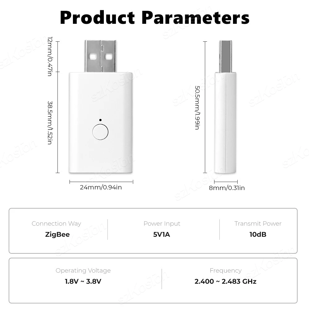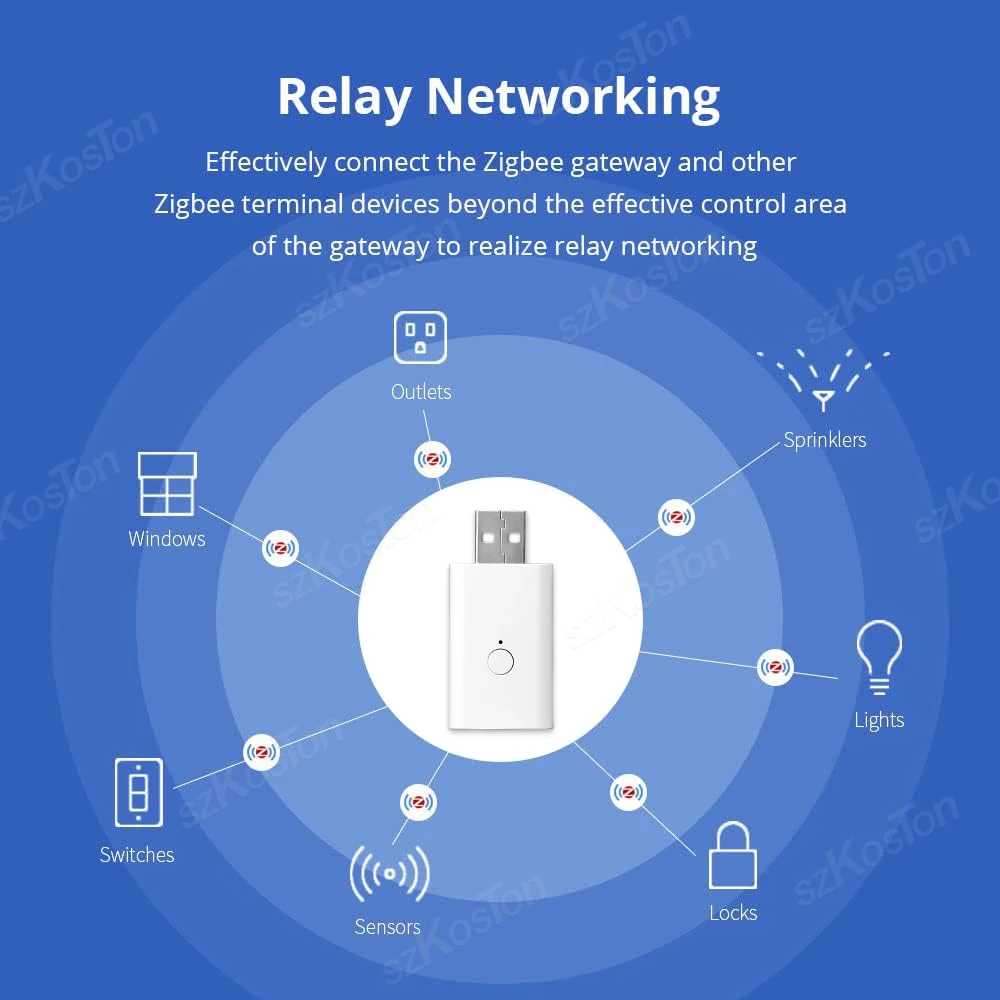 1.Low-cost ZigBee Signal Solution:Small USB mini design ensures its low cost but functional feature,performing well to solve the distance problem among Tuya ZigBee smart devices by transmitting stable ZigBee signal,which effectively solves the controlling problem caused by blocked signal under one Tuya ZigBee hub only for various devices over long distance.