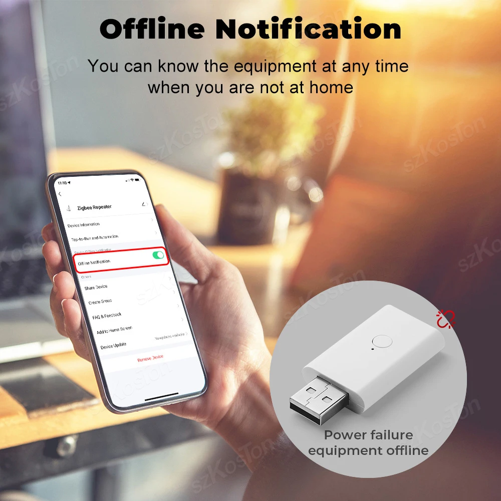 2.Expand Signal Coverage to 15-20m with Tuya Smart APP Added:No more worry about distance problem for signal interrupt,this ZigBee repeater can expand its signal coverage to 15-20m,and no more need to purchase another hubs with high cost,easily add the USB repeater into Smart Life APP into your Tuya ZigBee hub and then plug the USB into adapter on the wall or other available position for flexible usage.