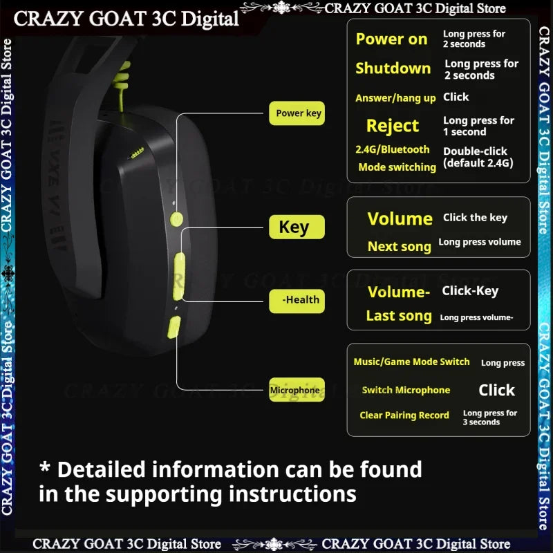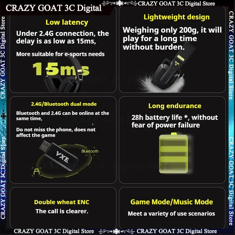 VGN VXE V1 Gaming Headset Bluetooth 5.3/2.4g Dual-mode Lightweight Headphone With Microphone Computer Esports Headset Gift,White