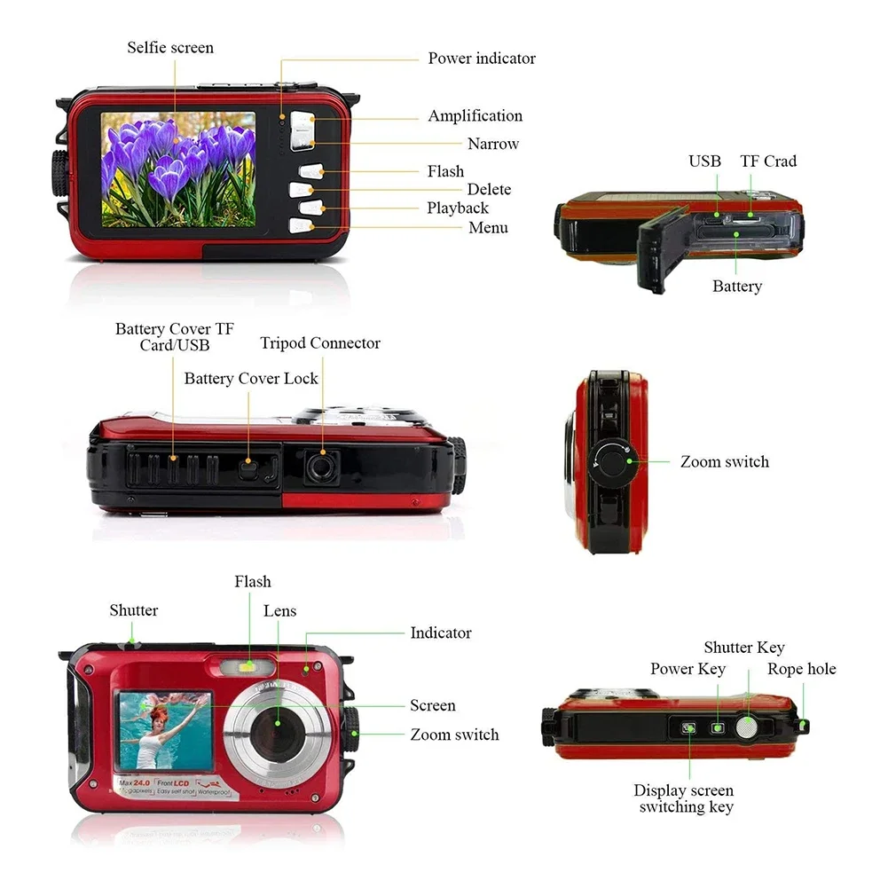 Waterproof Digital Camera Anti-Shake 1080P Full HD Selfie Outdoor Video Portable Recorder for Underwater DV Recording Present