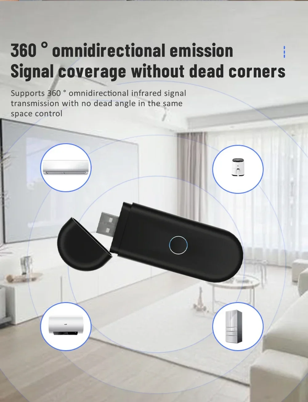 5.Support 360° omnidirectional :infrared signal transmission, the same space control without dead angle