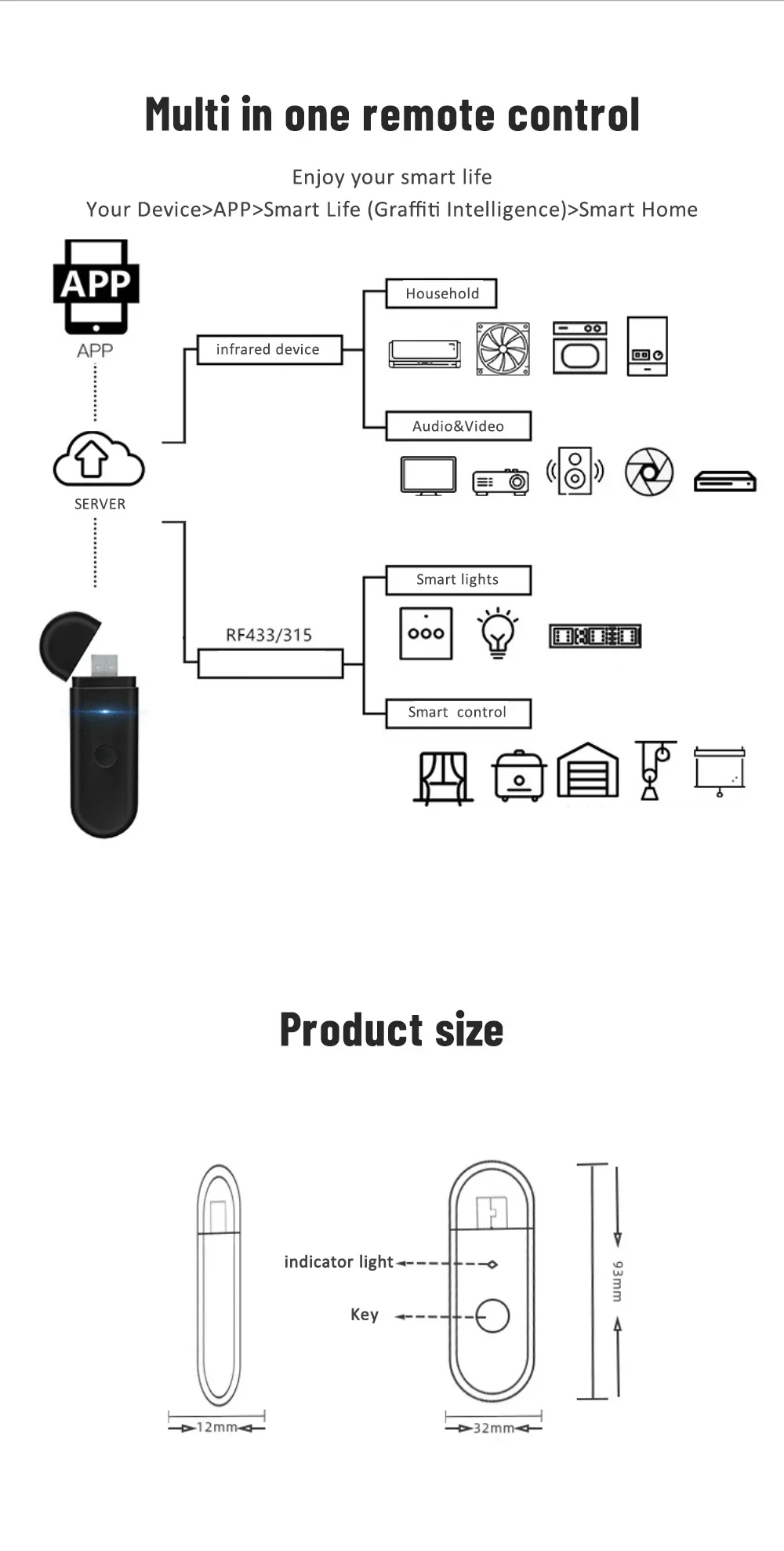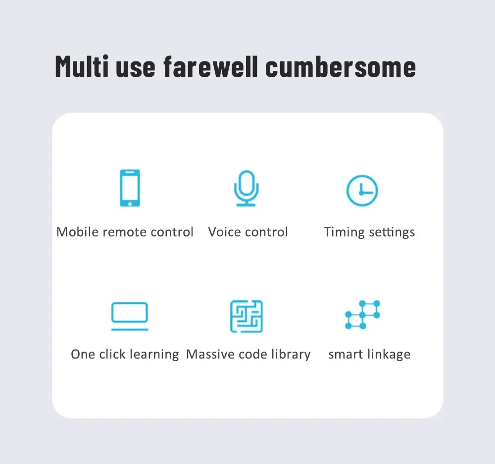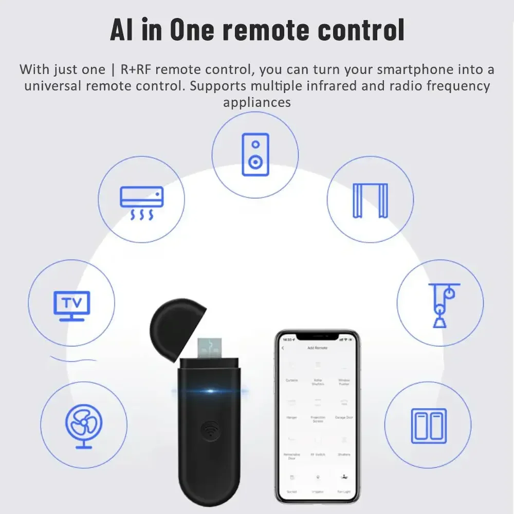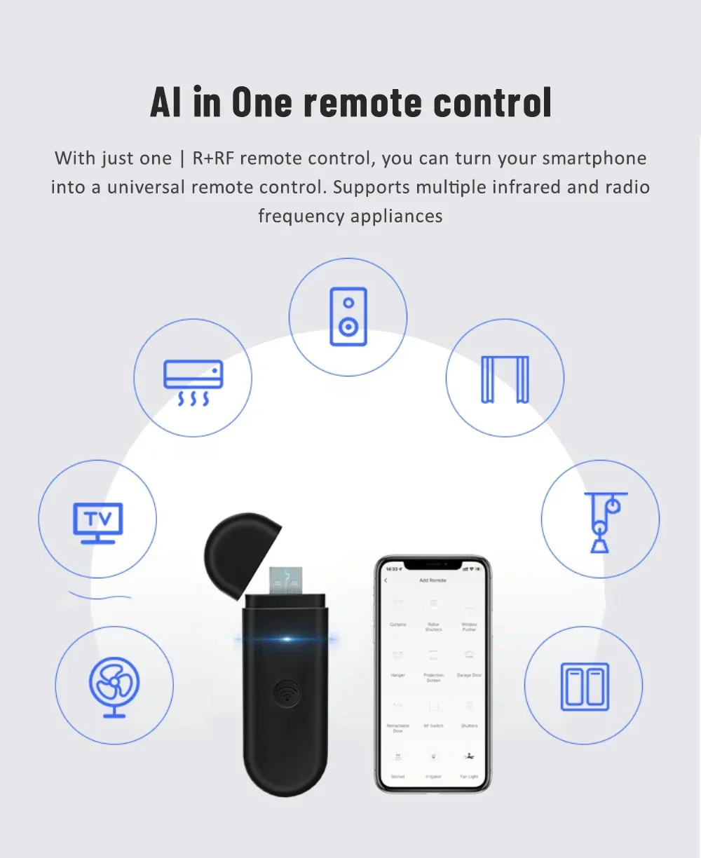 6.Just one IR RF remote control :can turn your smartphone into a universal remote control Support multiple IR and RF appliances