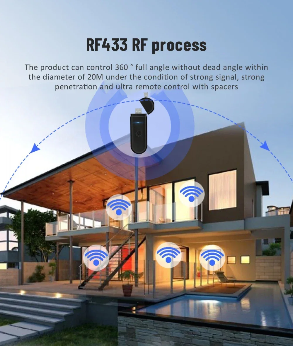 2.RF433 RF technology:strong signal, strong penetration, ultra-long distance control